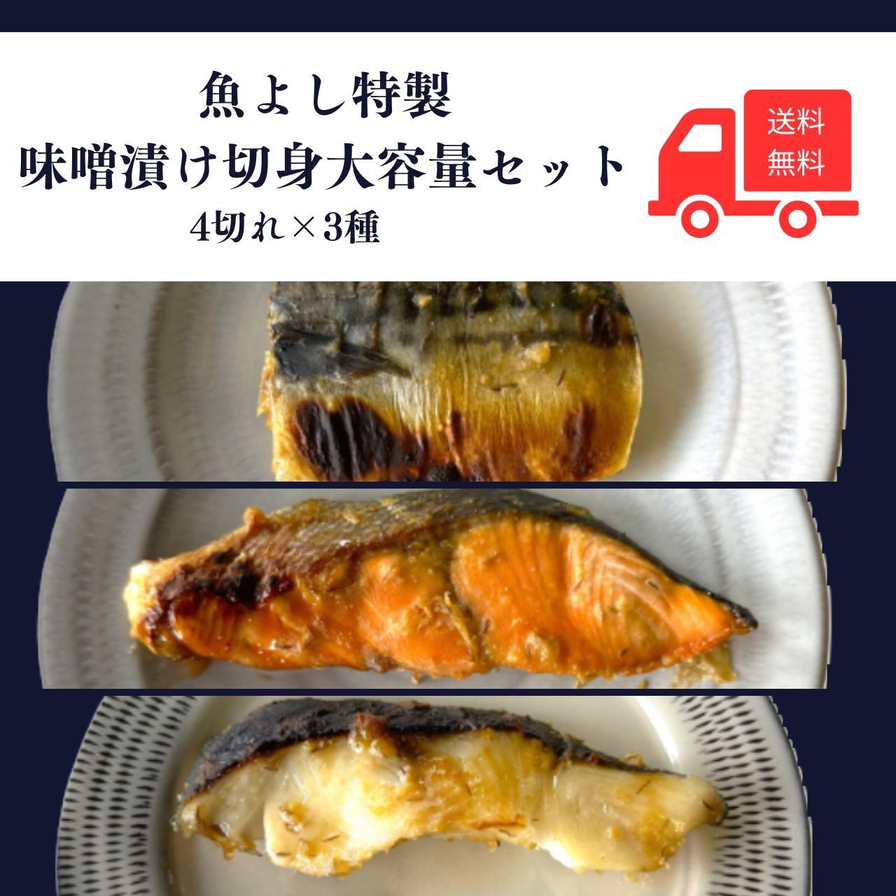 銀鱈・紅鮭・さばを、魚よし特製の無添加味噌だれでじっくり漬け込んだ切身の大容量セットです。