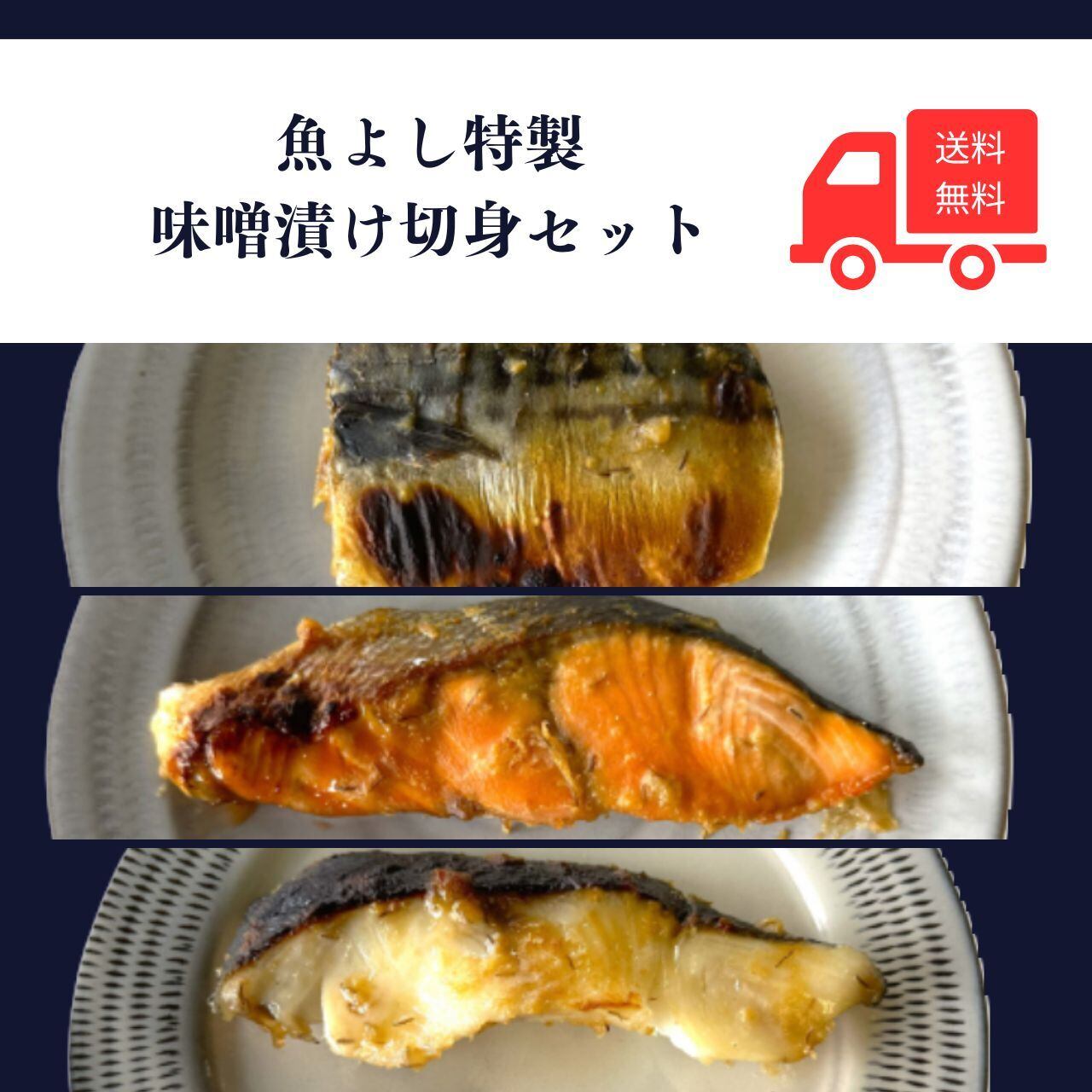 銀鱈・紅鮭・さばを、魚よし特製の無添加味噌だれで丁寧に漬け込んだ切身セットです。